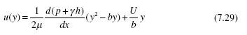 In a horizontal channel we can write d(p + lh)/dx = −Δp/L. If U = 0 the velocity profile is